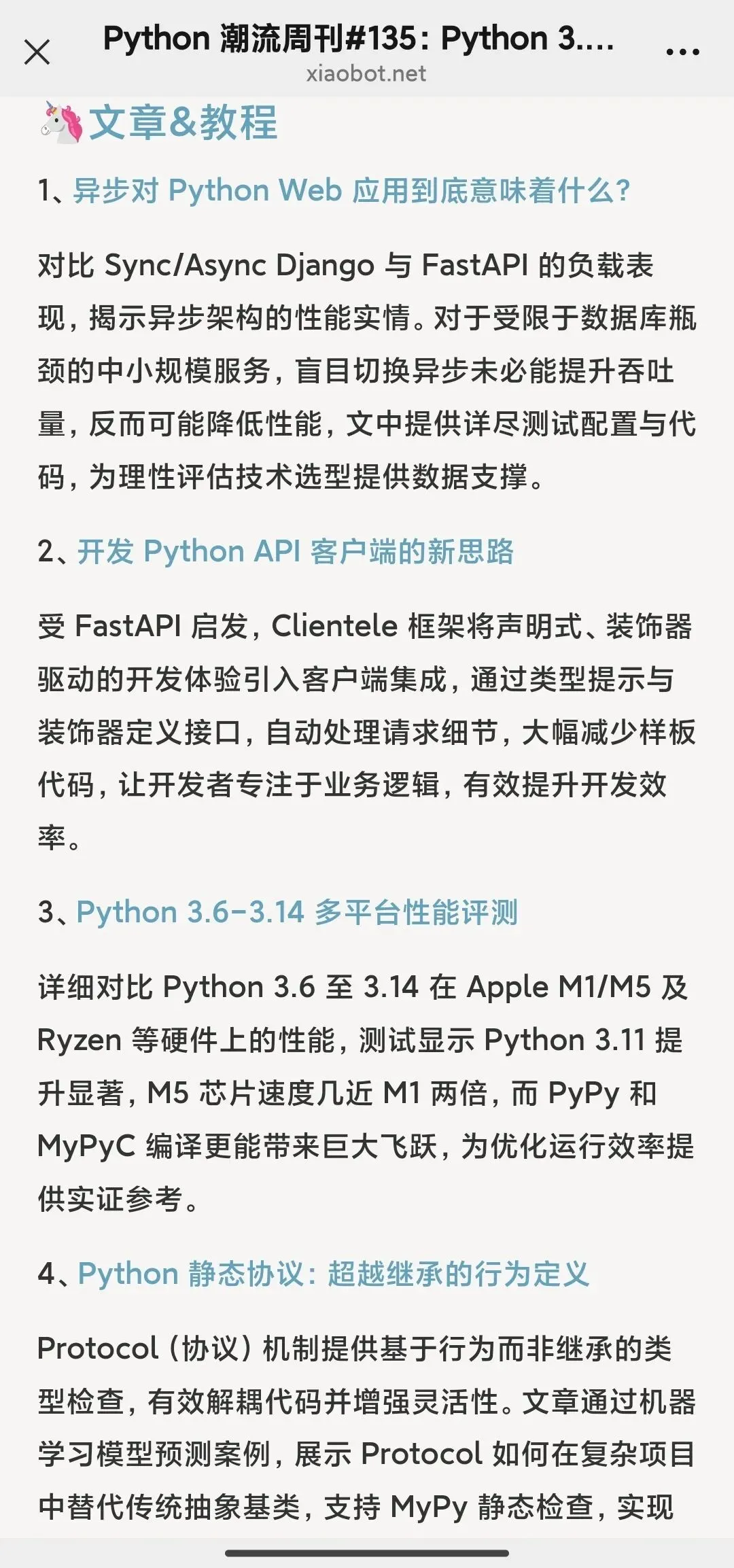 周刊实行付费订阅制,年费 148 元,平均每天 4 毛钱,为你精准筛选高质量技术内容。在信息洪流中为你淘金,助力技术视野拓展和职业发展,欢迎订阅:https://xiaobot.net/p/python_weekly