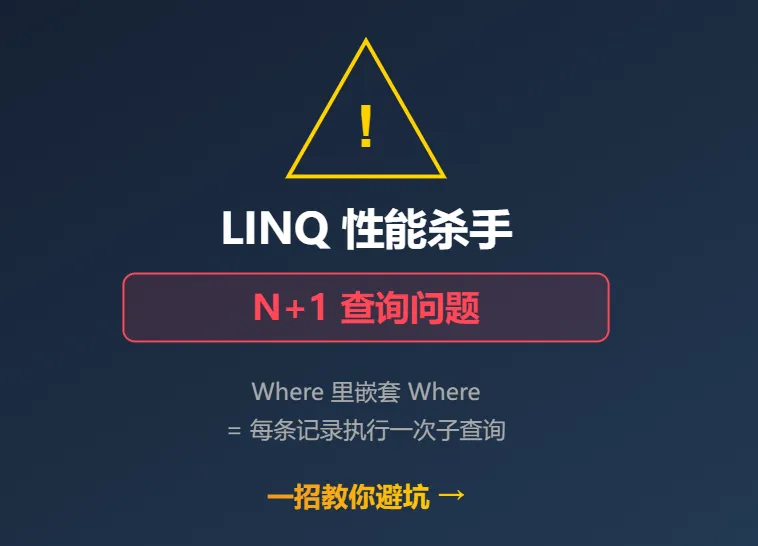这就是经典的 N+1 查询问题,LINQ 写法不当最容易踩的坑。