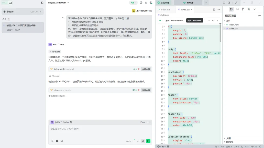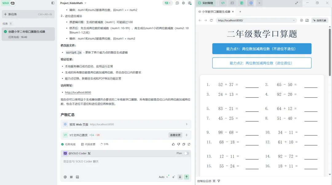 今天这篇纯干货教程,就手把手带你用 Trae,在 30 分钟 内从零做出一个 “二年级数学口算题生成器”,全程零代码、保姆级步骤演示,小白也能轻松跟上!