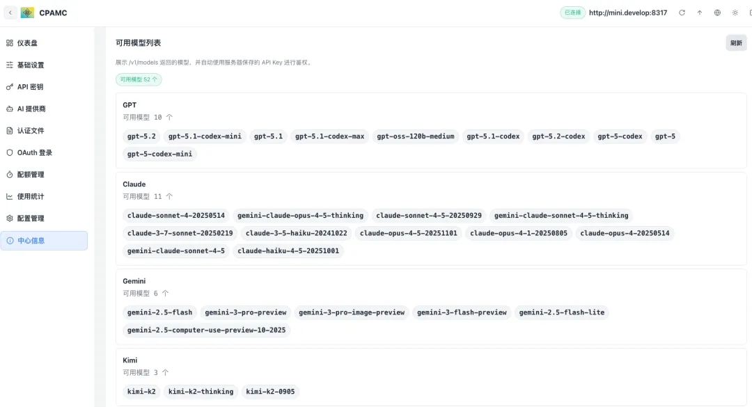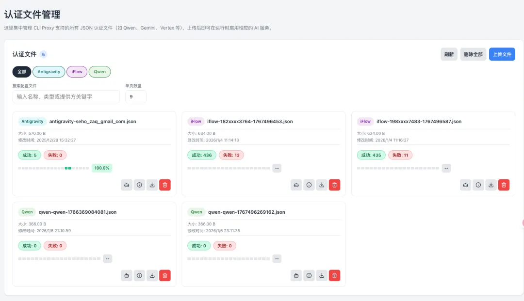 CPA 登录态抓取通过这种方式,我们可以免费且稳定地聚合 Antigravity、Qwen(通义千问)、iflow 等 CLI/IDE 专属模型。我的控制台现在看起来是这样的: