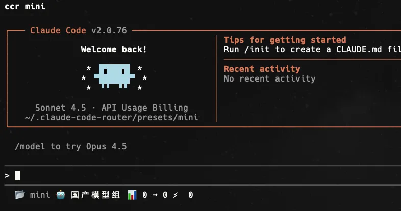 CCR 允许你极其轻松地配置这种策略。你可以让顶级模型负责"大脑"的思考,而将默认的输出任务交给国产大模型。