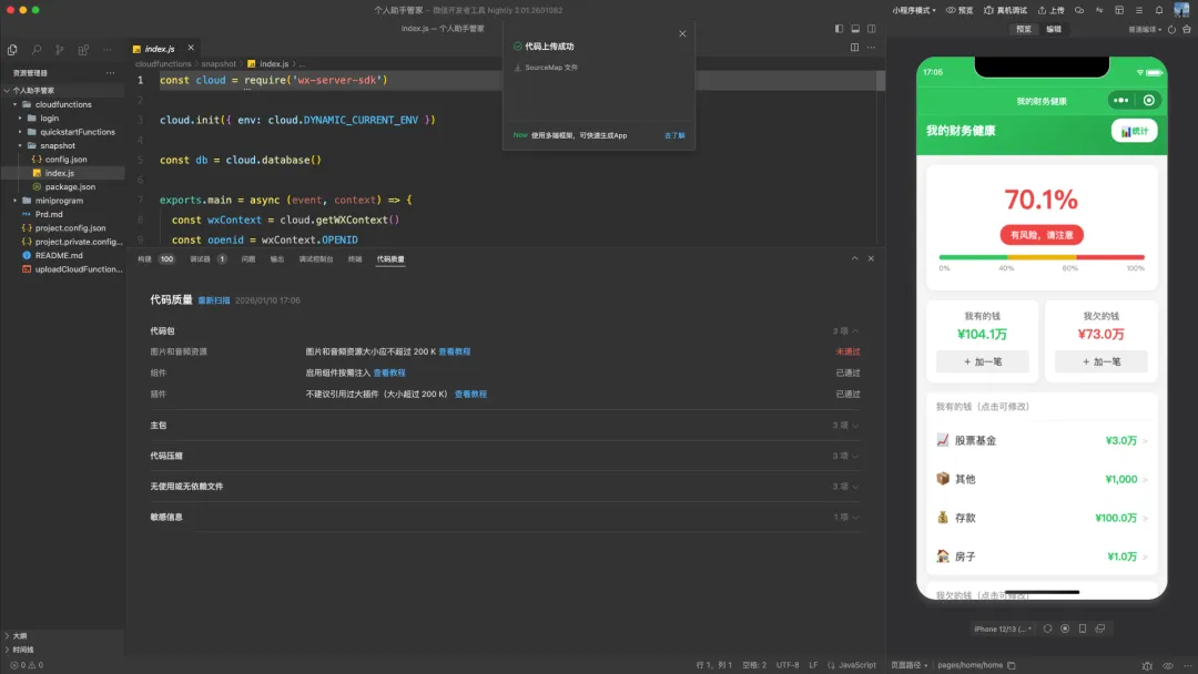 有没有办法,让自己的财务状况更加心中有数,不然都不知道忙活一年,从头到尾,不知道自己的财务状况。基于这个问题,就借助目前的AI编程,想到了开发一款个人生活小管家这么一个小程序。