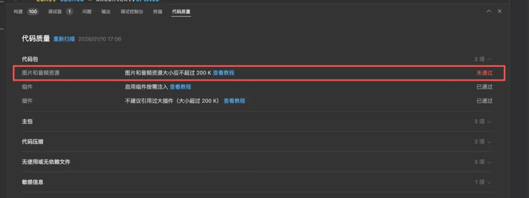 上传完,代码,底部还会有个代码审查,如果有什么问题的话,还要发给AI再改。比如:
