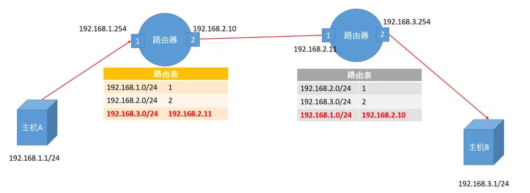 # 静态路由临时添加命令格式(重启失效)# route add -net 目的网段 gw 下一跳地址# 说明:-net 指定目标网段,gw 指定下一跳的网关/路由器IP地址# ========== 开启Linux内核的IP路由转发功能(路由必备,默认关闭) ==========# 1. 查看当前路由转发功能状态,0=关闭,1=开启[root@router-a ~]# cat /proc/sys/net/ipv4/ip_forward0# 2. 临时开启路由转发功能,将数值1写入对应内核参数文件(重启服务器失效)[root@router-a ~]# echo 1>/proc/sys/net/ipv4/ip_forward# 3. 验证路由转发功能是否开启成功[root@router-a ~]# cat /proc/sys/net/ipv4/ip_forward1