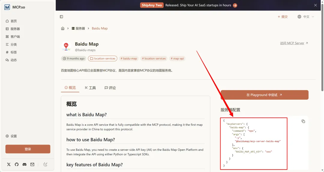 "env": {"BAIDU_MAP_API_KEY": "百度开发者平台apikey"},