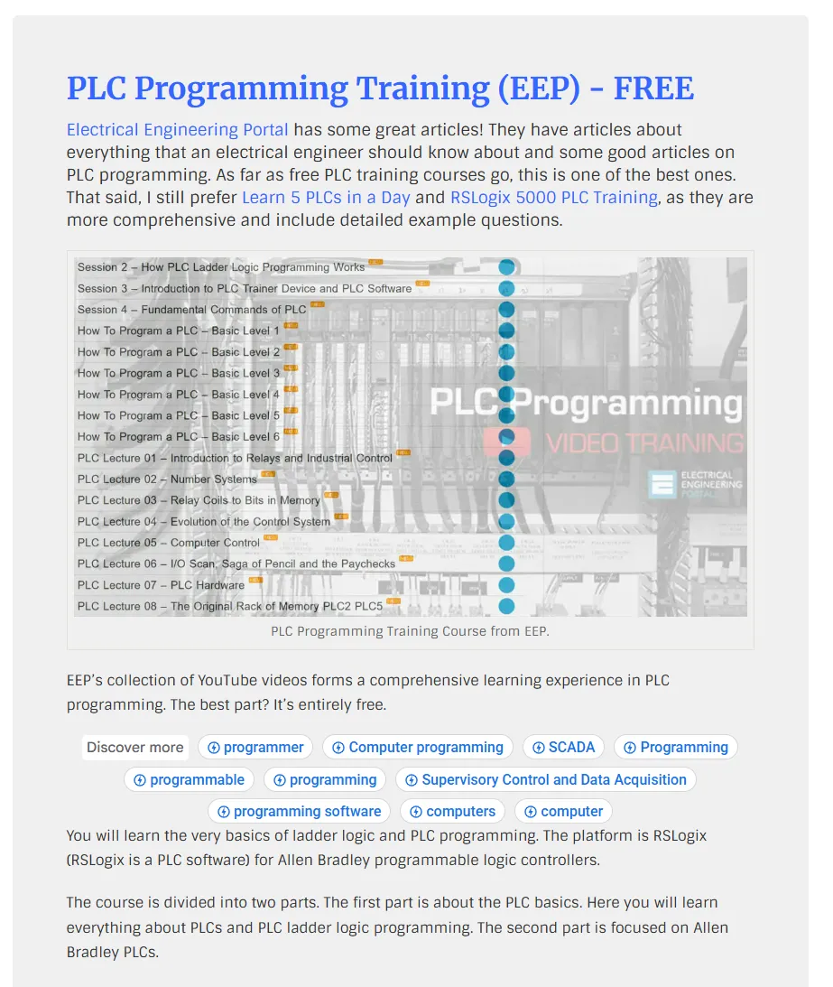 这个网站的博客、文章常常是我们Hello工控的参考来源,里面的动画、逻辑和素材等等都是不错的,视频7天免费试用,但文章等可以免费查阅。
