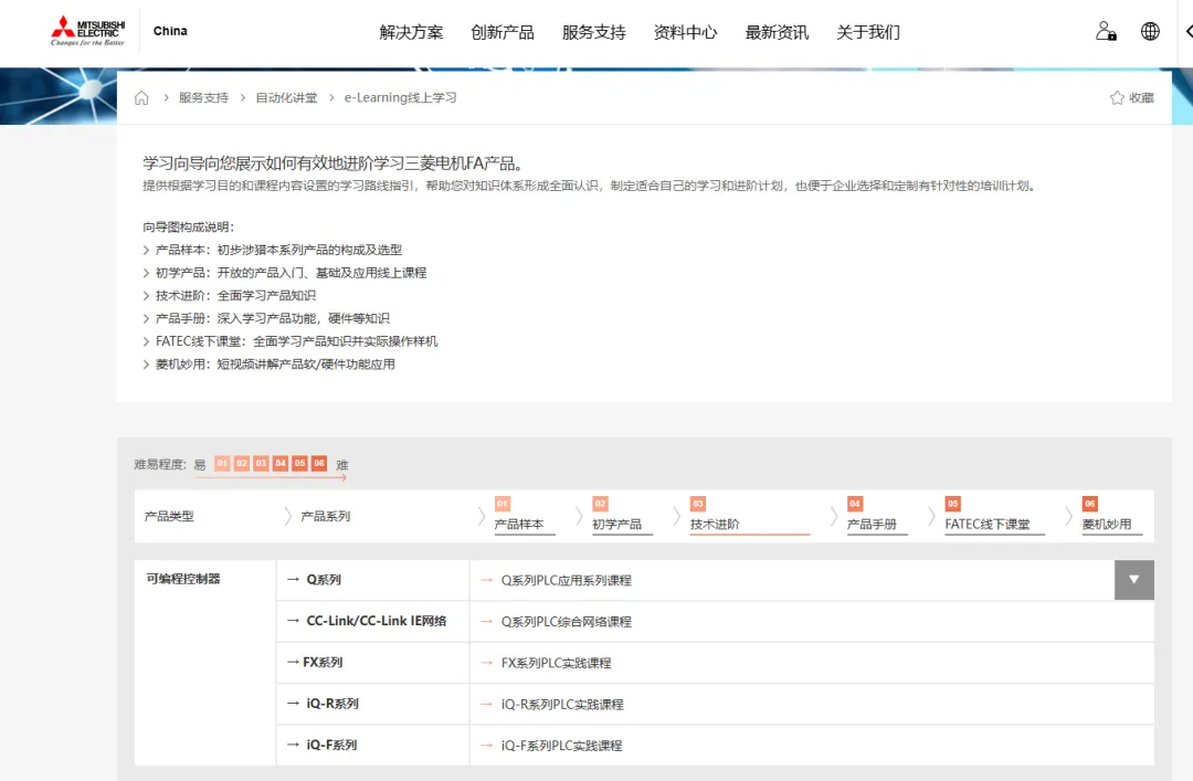 https://www.mitsubishielectric-fa.cn/support/learn/guide.html