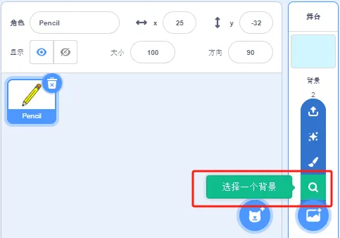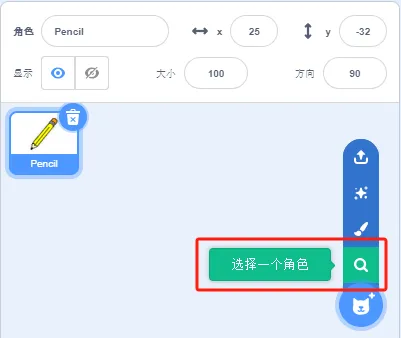 (2)删除默认小猫角色,添加角色:Pencil。