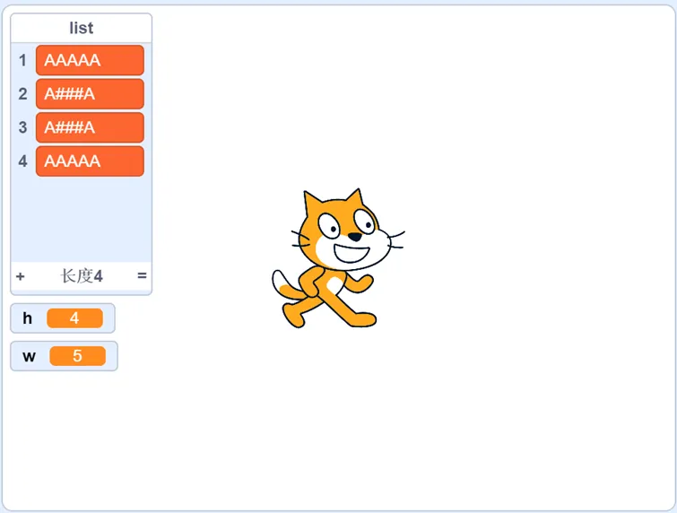 默认小猫角色和白色背景,编写程序请你帮小杨根据给定的 和 在列表中呈现对应的长方形。