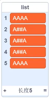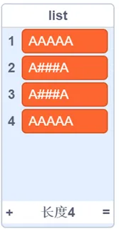 输出:list = ['AAAA', 'A##A', 'A##A', 'A##A', 'A##A', 'A##A', 'AAAA']