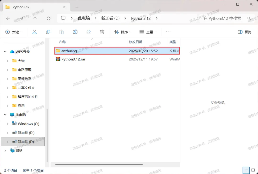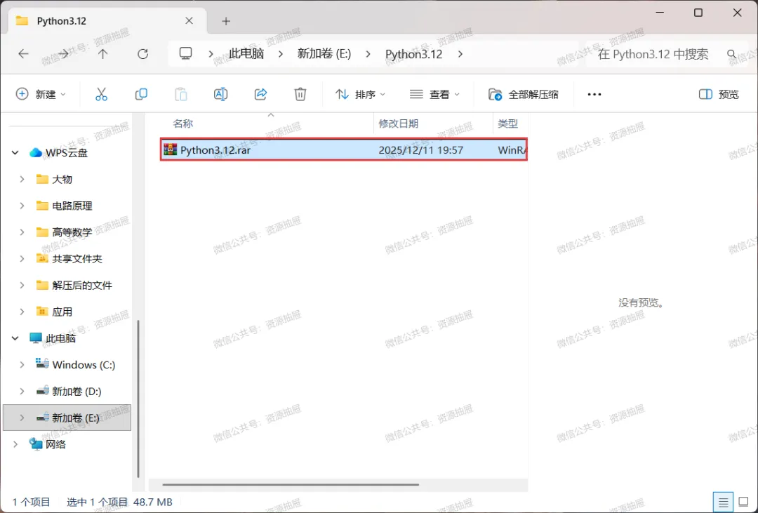 4.解压好后,打开解压得到的[Python3.12]文件夹