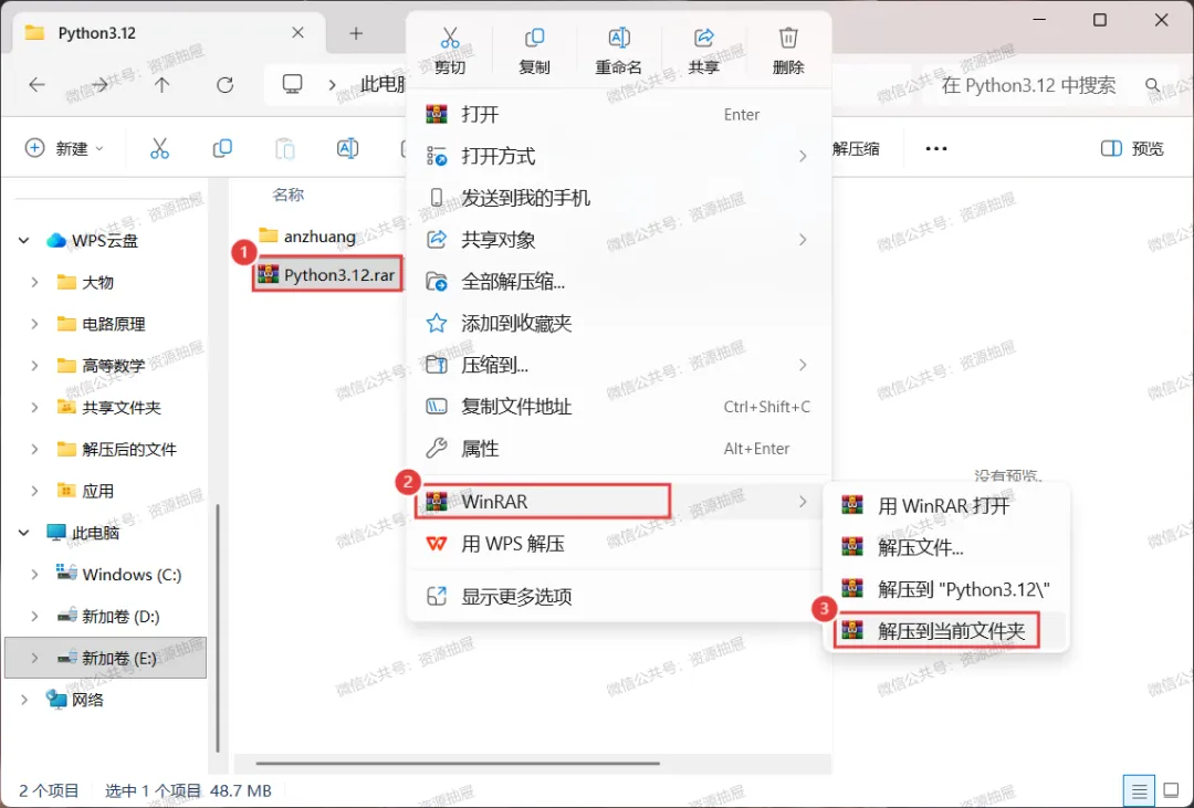 3.将压缩包[Python3.12.rar]解压到当前文件夹