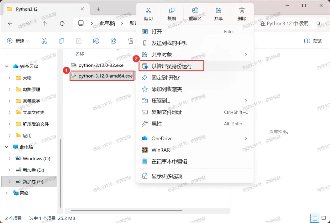 5.鼠标左键选中[python-3.12.0-amd64.exe],再右键选择[以管理员身份运行]
