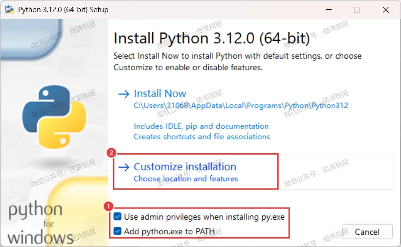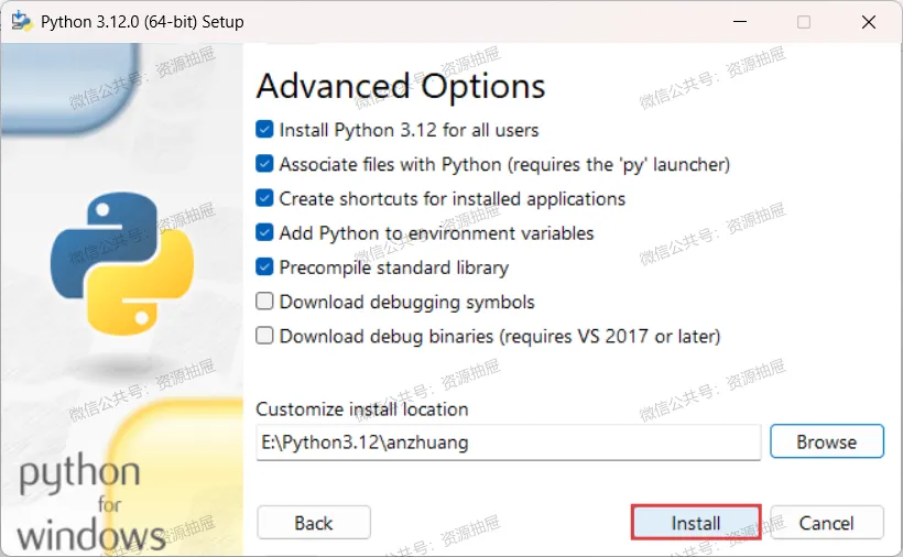 8.勾选[Install Python 3.12 for all users],点击[Browse]