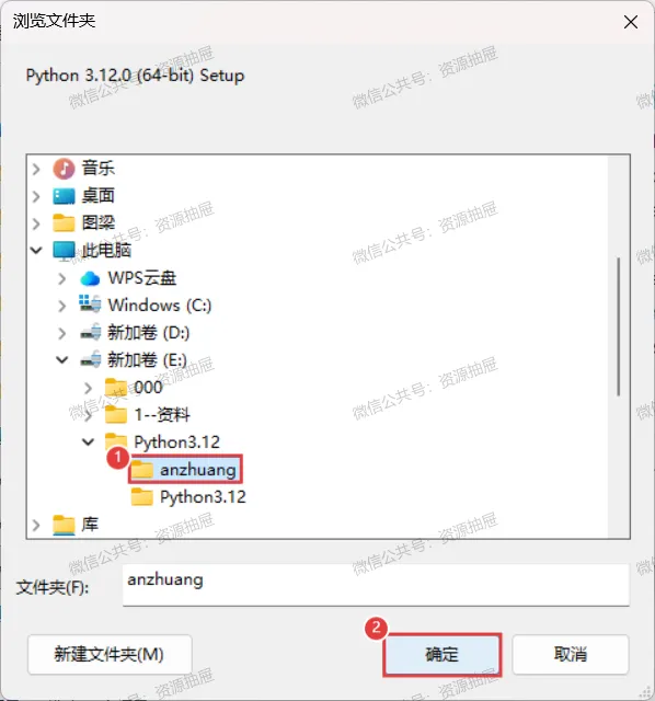9.找到并选择之前建立的[anzhuang]文件夹,点击[确定]