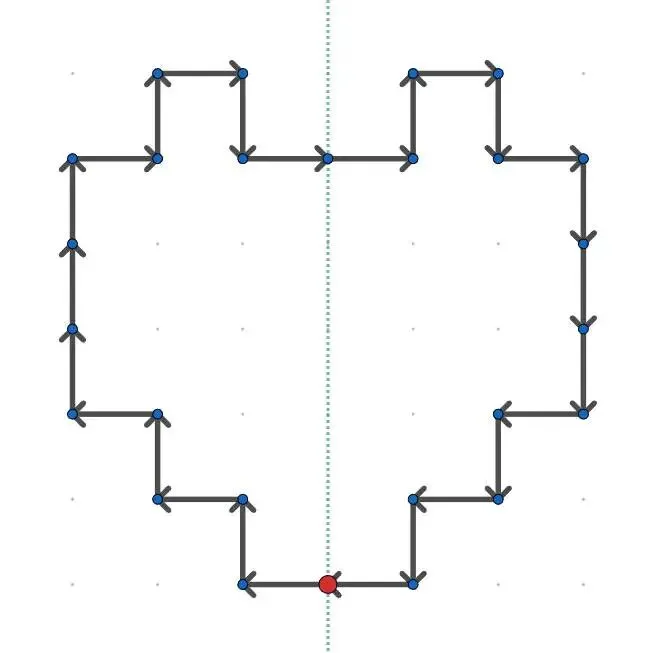 /\/ \\ / \/图形的轴对称性可转化为「特征序列的回文性」—— 若图形存在某条对称轴,则沿该轴折叠后,两侧的“步数+转向”信息完全对称