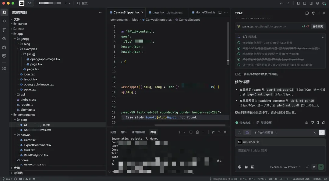 这段提示词发给 AI 之后,Gemini 大概率会告诉你要用什么动态路由之类的实现方案,如果你能理解,那自然最好,如果理解不了,也没关系,直接把 Gemini 回复的内容,发给 Cursor/Trae 等 AI 代码编辑器的 Build 模式即可。