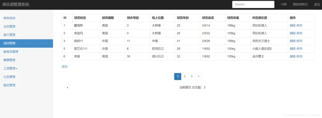 实现对球员等信息的增删改查,以及写到前端界面展示。