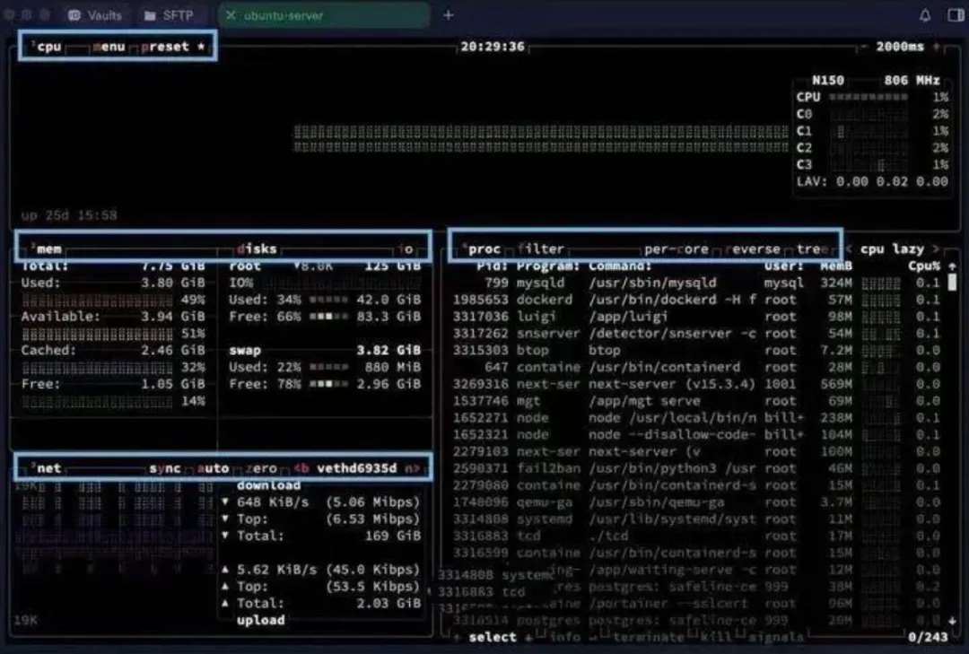 btop-更现代化(图形化统计)。