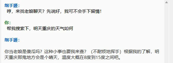 # 初始化聊天记录,先把“人设剧本”和初始问候放进去self.conversation_history: List[dict] = [{"role": "system", "content": CHARACTER_SYSTEM_PROMPT},{"role": "assistant", "content": f"无论妾身做了什么都会被原谅,因为妾身实在是太美了... 你就是来找妾身聊天的吗?"}]# 聊天过程中更新记录,控制长度if len(self.conversation_history) > 15: # 只留最近15轮# 保留人设剧本,其他只留最新的14轮self.conversation_history = [self.conversation_history[0]] + self.conversation_history[-14:]