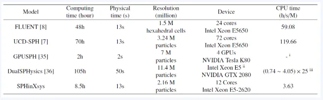 - 对包含复杂FSI和多体动力学的振荡浪涌转换器(OWSC)进行的波相互作用的数值模拟表明,借助新的数据结构, SPHinXsys不仅能够准确预测复杂的动力学,而且还显示出优化的性能。 通过CPU成本分析,并与商业软件包ANSYS FLUENT和其他基于SPH的求解器进行比较,展现了的优越计算性能。