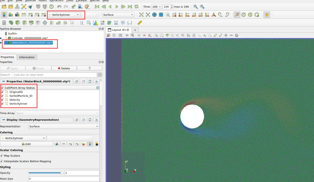 SPHinXsys项目还有一个特点是,将传统的有限体积法FVM和光滑粒子SPH统一在一个框架里面,因此同样可以利用FVM方法进行开发,圆柱绕流测试结果: