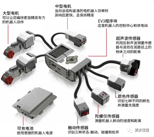 ASE机器人构建是小颗粒机器人套装,其主控器容量大、运算快、丰富的传感器配件,稳定的动力输出,精准有效的积木结构。