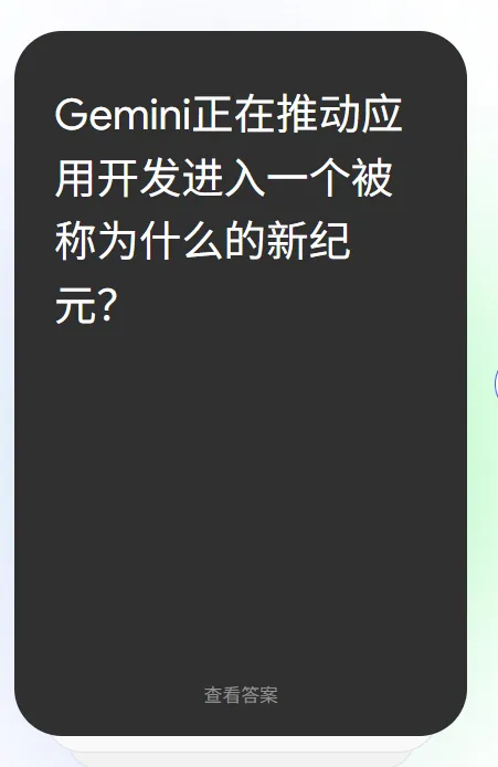 Gemini(中文名:双子座)是谷歌(Google)开发的一系列多模态大型语言模型(MLLM),旨在通过原生融合文本、图像、音频、视频、代码等多种信息类型,实现更接近人类智能的复杂任务处理。Build your ideas with Gemini,确实可以做到一个对话框,我们可以在里面提App的界面设计与场景功能等需求,并且可以不断迭代App功能。