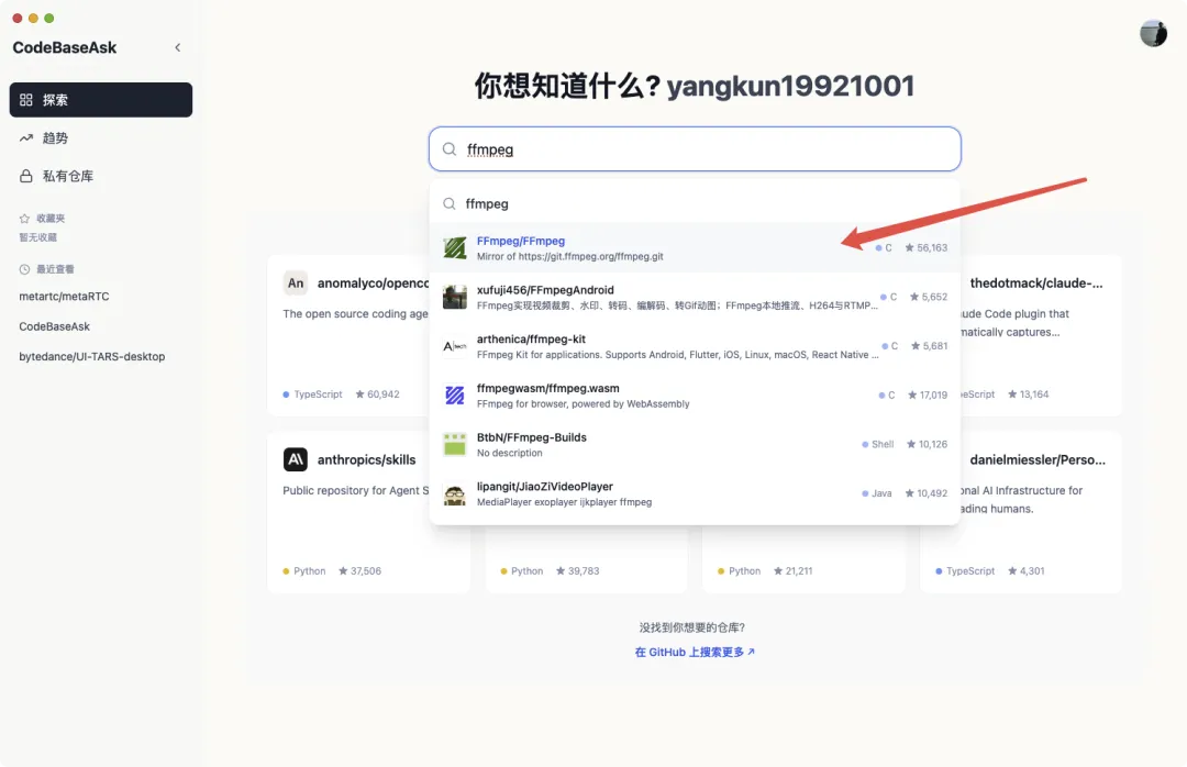 - 快速搜索:输入仓库名称自动搜索 GitHub 仓库