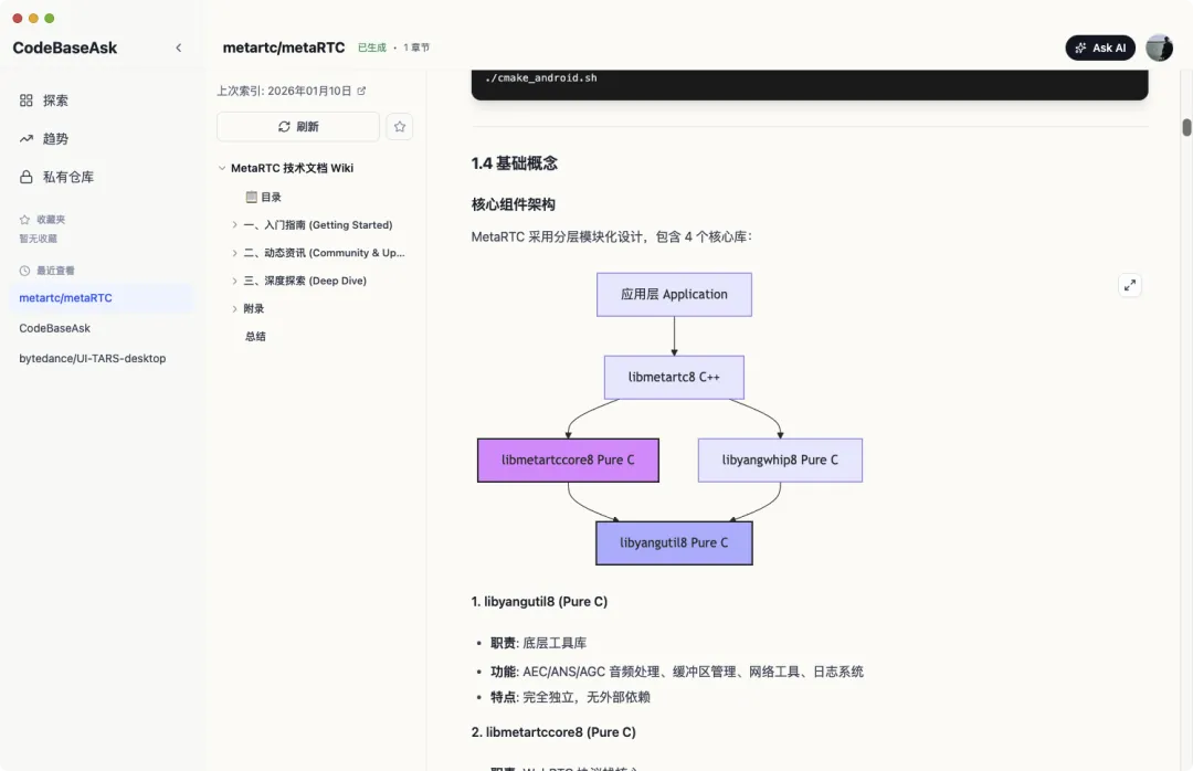AI 驱动的代码库问答与文档生成软件