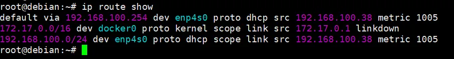 在Linux系统中,查找当前网络的网关地址有多种命令行方法,以下列举几个常用的。其它的方法也欢迎各位大佬补充一下。方法1:查看路由表(最通用,无需额外工具),网关本质是路由表中的默认路由(default 条目),通过 ip route 或传统 route 命令即可查看。关键信息:default via 后面的 192.168.100.254 就是默认网关。dev enp4s0表示网关通过网卡enp4s0连接。传统命令(net-tools 工具集,现在很多发行版默认不安装了)apt install net-tools# 再执行:route -n