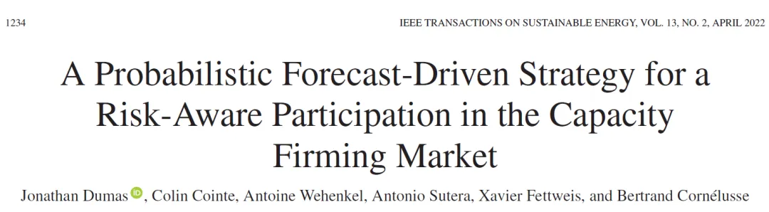 Dumas J, Cointe C, Wehenkel A, et al. A probabilistic forecast-driven strategy for a risk-aware participation in the capacity firming market[J]. IEEE Transactions on Sustainable Energy, 2022, 13(2): 1234-1243.开源代码链接:https://github.com/jonathandumas/capacity-firming-ro本文内容基于论文原文提炼,部分表述借助 AI 生成,仅供学术交流参考,具体技术细节请以原文为准。实际工程应用中,需结合具体场景验证算法可行性。若涉及侵权或内容错误,请联系删除。欢迎业务合作交流,邮箱:power_journal_code@163.com更多一区TOP高水平论文代码解读,请关注微信公众号:能电代码研享社