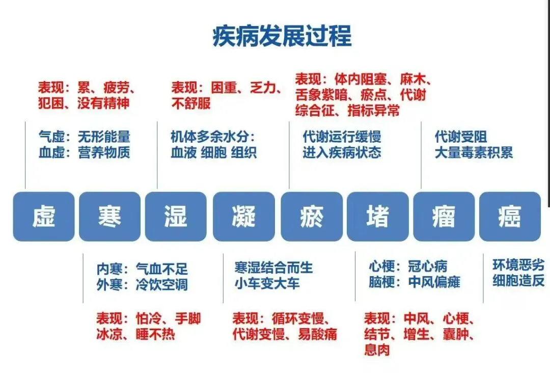 虚→寒→湿→凝→瘀→堵→瘤→癌。