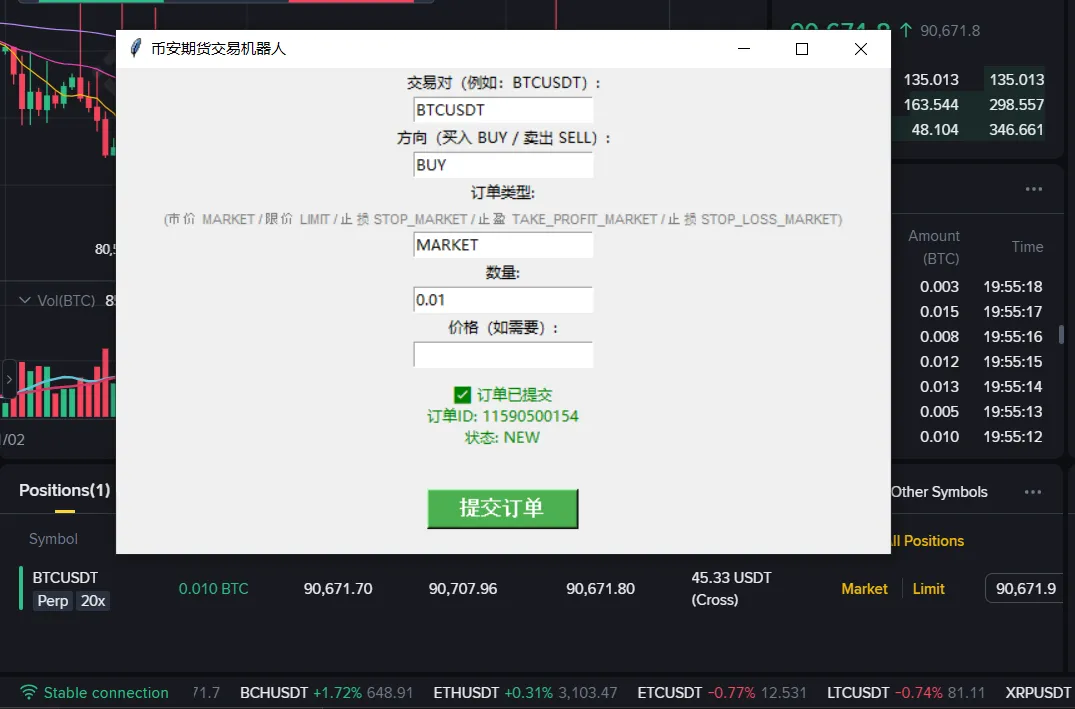 本项目实现了一个币安期货交易机器人,具备以下特性: