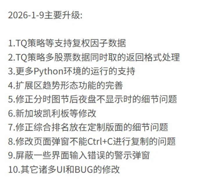 目前,通达信Python量化内测版TQ又已经更新了。