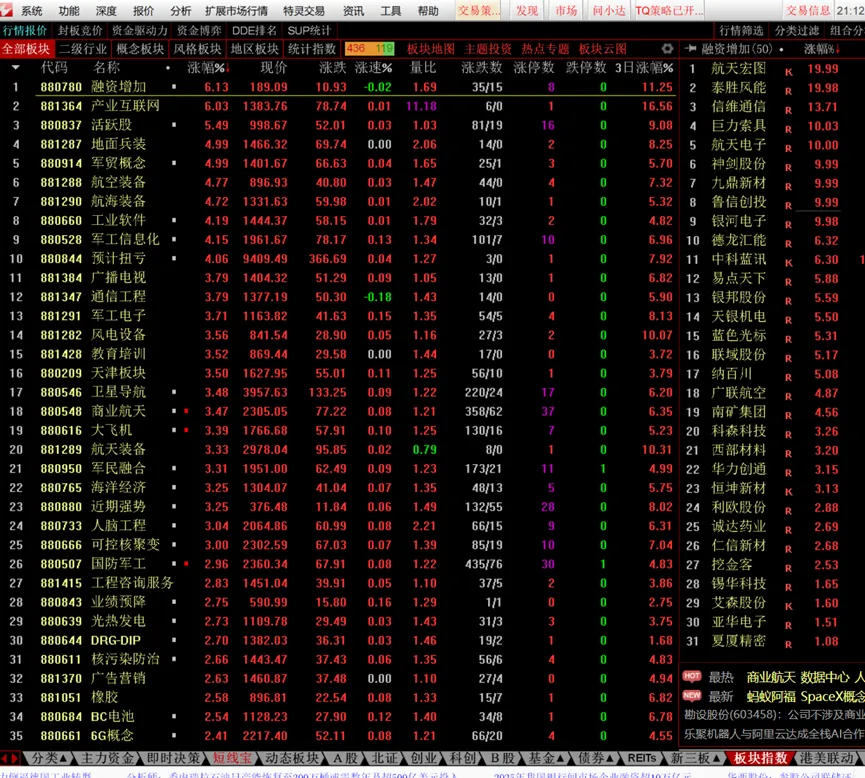 这就需要从通达信软件本身来找了,就在下面这个“板块指数”界面,列出了“全部板块”,左边的两列就是需要的一切:代码和名称。