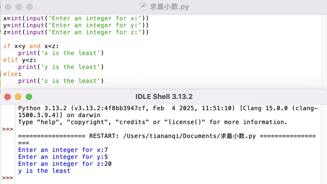 4、求三个数中的最小数