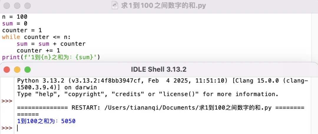 例题:求1到100之间数字的和