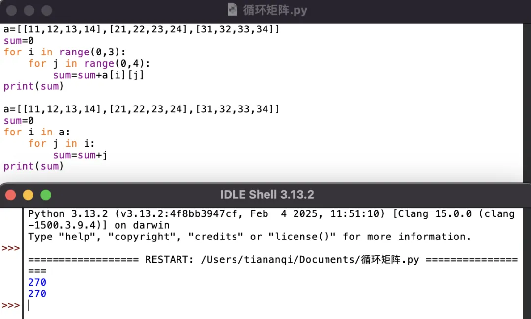法二:i依次取每个子列表,j依次取子列表的每个元素