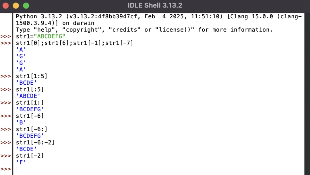 索引为负数:-n,-(n-1),......,-2,-1