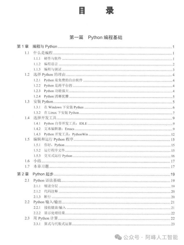 在这一部分,读者将首先了解Python语言的特点、安装方法以及基础语法。这些基础知识是构建Python编程大厦的基石,为后续学习打下坚实的基础。