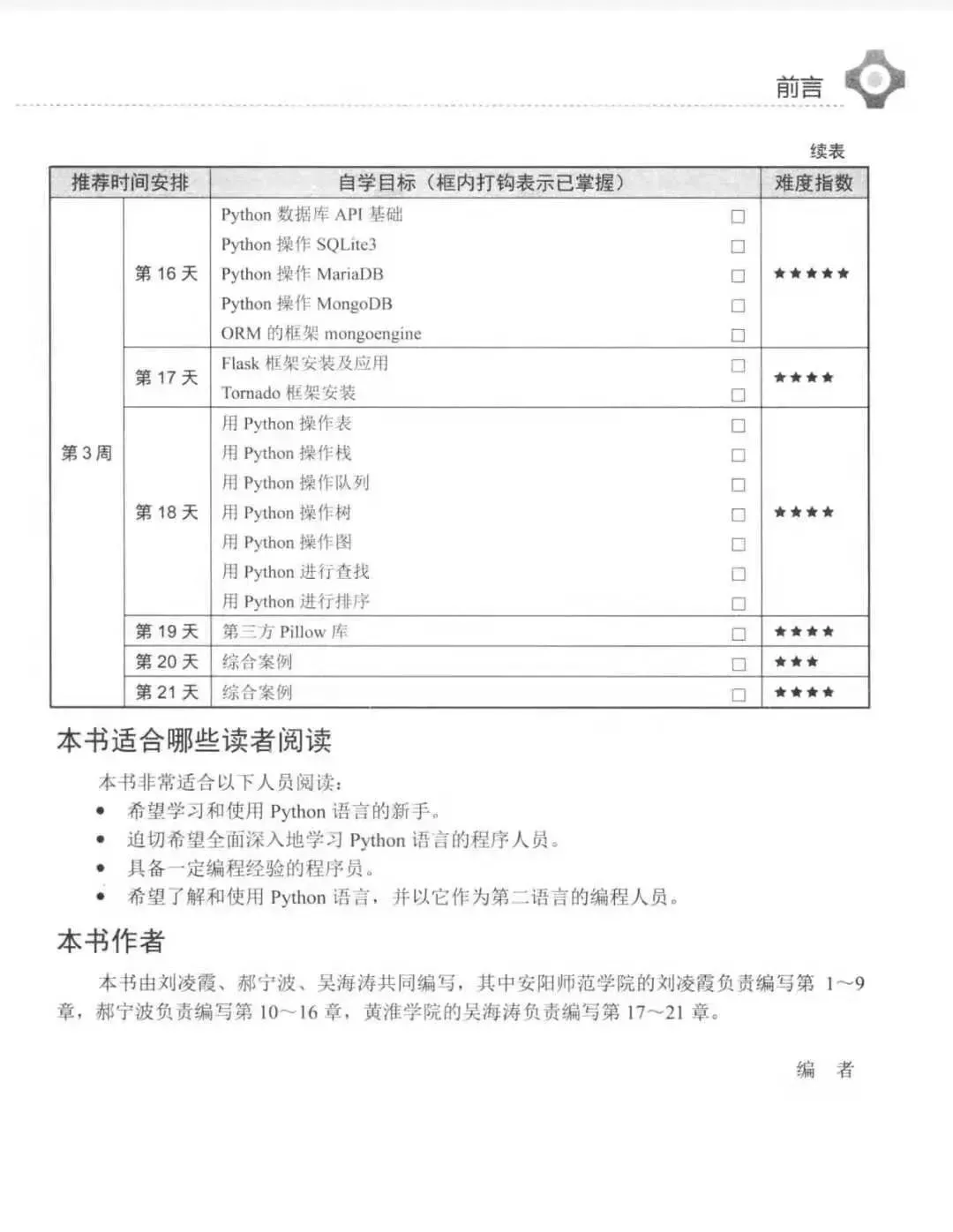 书籍的分享格式为PDF电子版,小伙伴们手机也可以阅读学习哦!书籍终归只是辅助,想要真的深入学习python,当然还要有系统的学习方法和学习教程才可以让你在学习的路上一帆风顺哦!