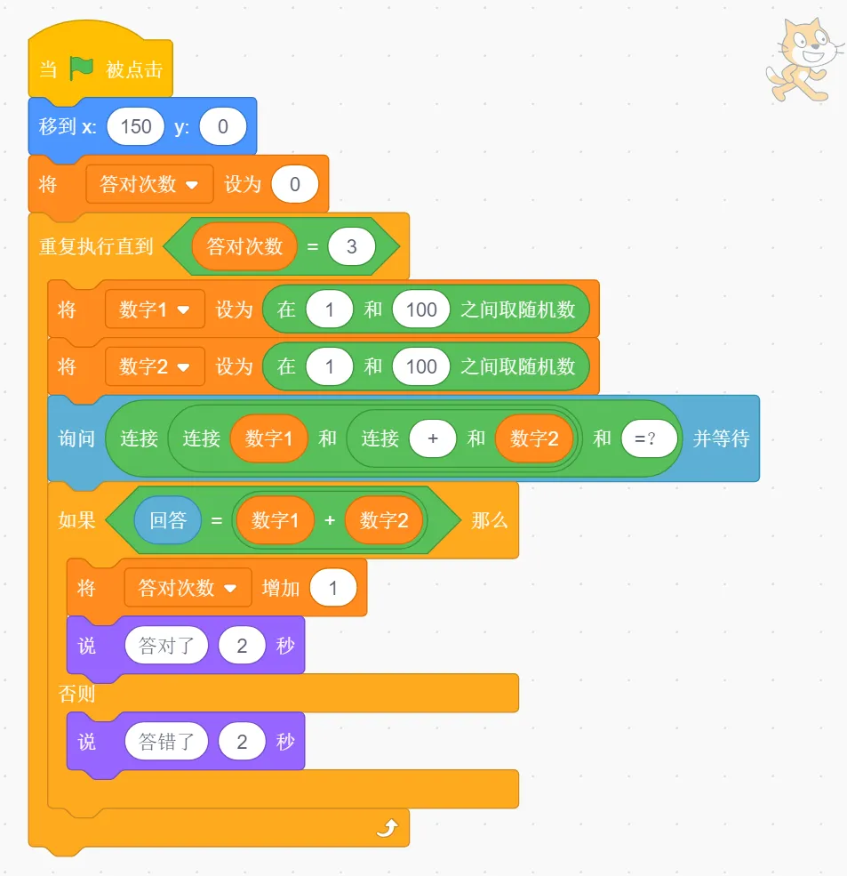 (5)答对了,小猫说:"答对了"2秒;答错了,小猫说:"答错了"2秒;