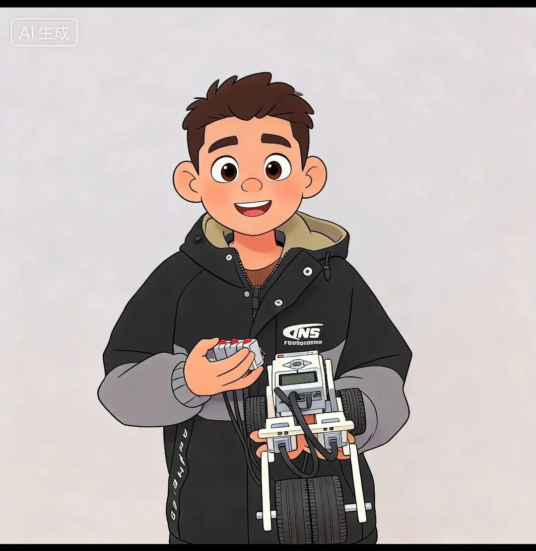 搭建完成后,我和三个轮子的压路机对战,最后我赢啦!因为对方的三个轮子不太稳,没一会儿就被我的压路机掀翻了。🤫我忍不住跟他说:“你这个有点菜哦!”