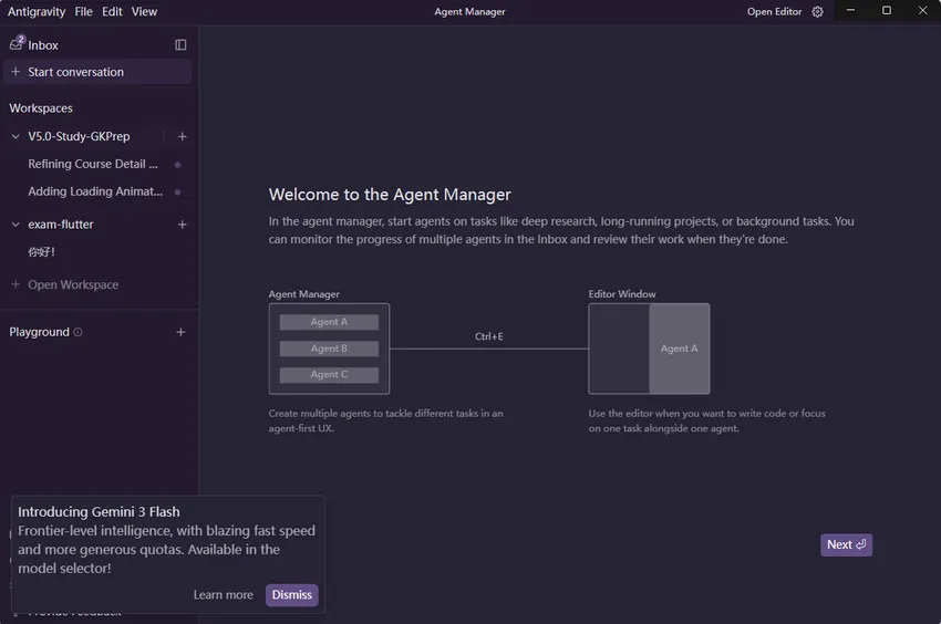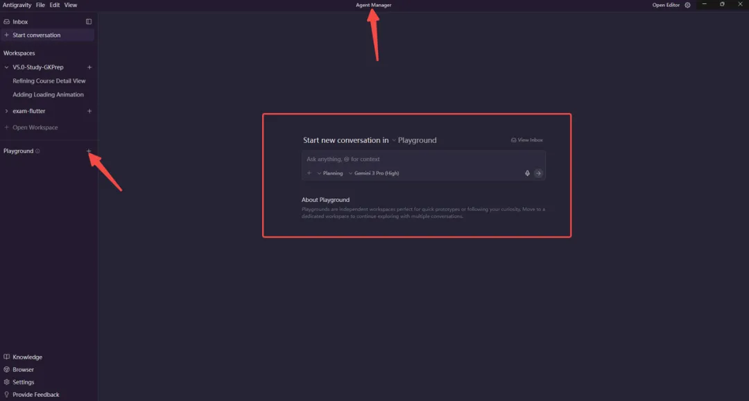 在 https://policies.google.com/terms 查看你google账号的关联地区在 https://policies.google.com/country-association-form 可以申请修改账号当前的国家或地区版本三、 AgentManager:你的 AI 开发团队或者可以随时通过按 CMD+E (Mac) 或 CTRL+E (Windows) 在代理管理器和编辑器之间切换。您还可以通过管理器管理编辑器窗口,例如隐藏、聚焦或关闭它们。- Plan:智能体可以在执行任务前进行规划。适用于深度研究、复杂任务或协作工作。在此模式下,智能体会将工作组织成任务组 ,生成成果 ,并采取其他步骤来彻底研究、思考和规划工作,以达到最佳质量。