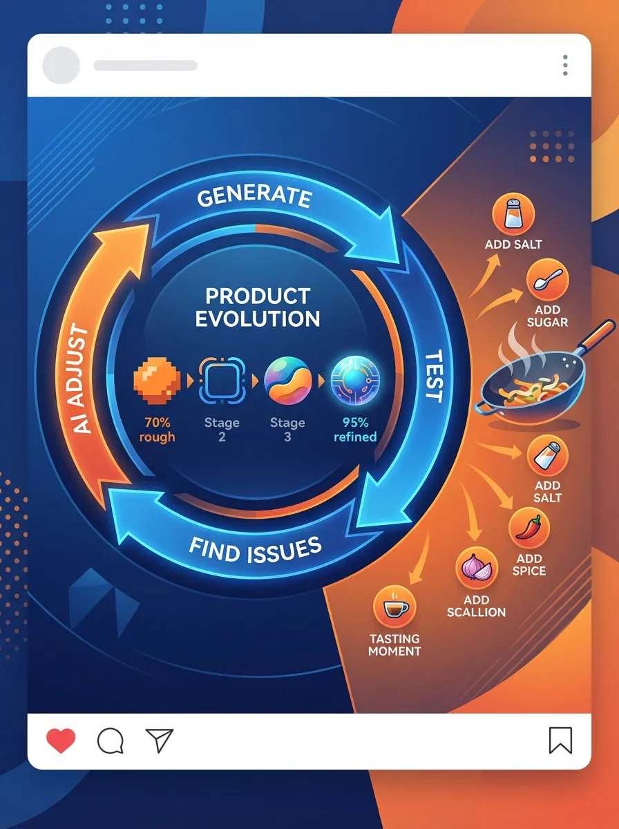 AI让试错成本降到极低:改代码只需几秒钟,就像重新炒一盘菜。