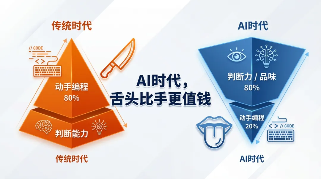核心能力转变: 不是"写代码的手",而是"判断好坏的舌头"。