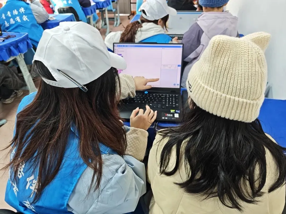 看着孩子们专注地拖拽积木块,调试自己的动画作品,志愿者们也收获了满满的成就感:“当孩子们兴奋地展示自己设计的拜年动画时,我们看到了科技启蒙的真正意义。”