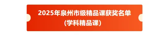 近日,2025年泉州市“基础教育精品课”市级评选结果公布,我校黄依冰老师的作品入围获奖。