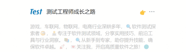 如果你觉得这篇文章还不错,不妨动动手指,给它点个赞👍,让更多人看到它的魅力。觉得内容对你有帮助,就大胆地分享到朋友圈吧,让知识传递得更远。同时,也欢迎在评论区留下你的想法和见解,我们一起交流探讨。当然,别忘了关注我,这样你就不会错过我后续的精彩分享啦!最后,记得点个“在看”👀,让我们共同见证测试之美!